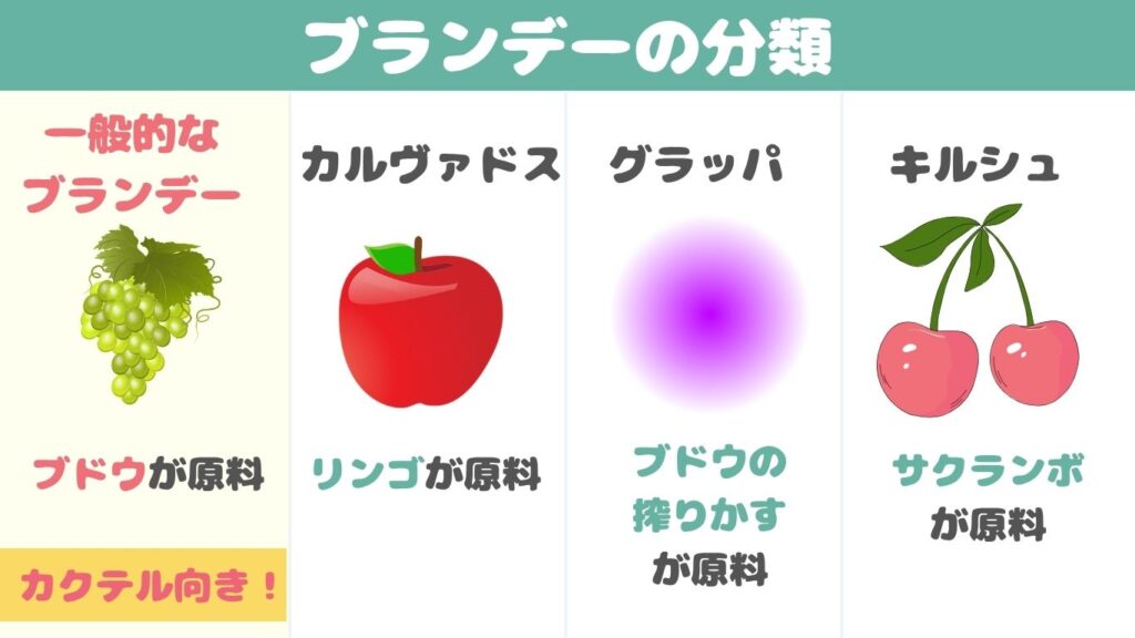 結論、カクテル向けの商品を探すなら、”ブドウが原料の一般的なブランデー”を選びましょう。