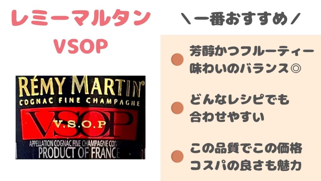 本記事で初心者に一番におすすめは「レミーマルタンVSOP」。