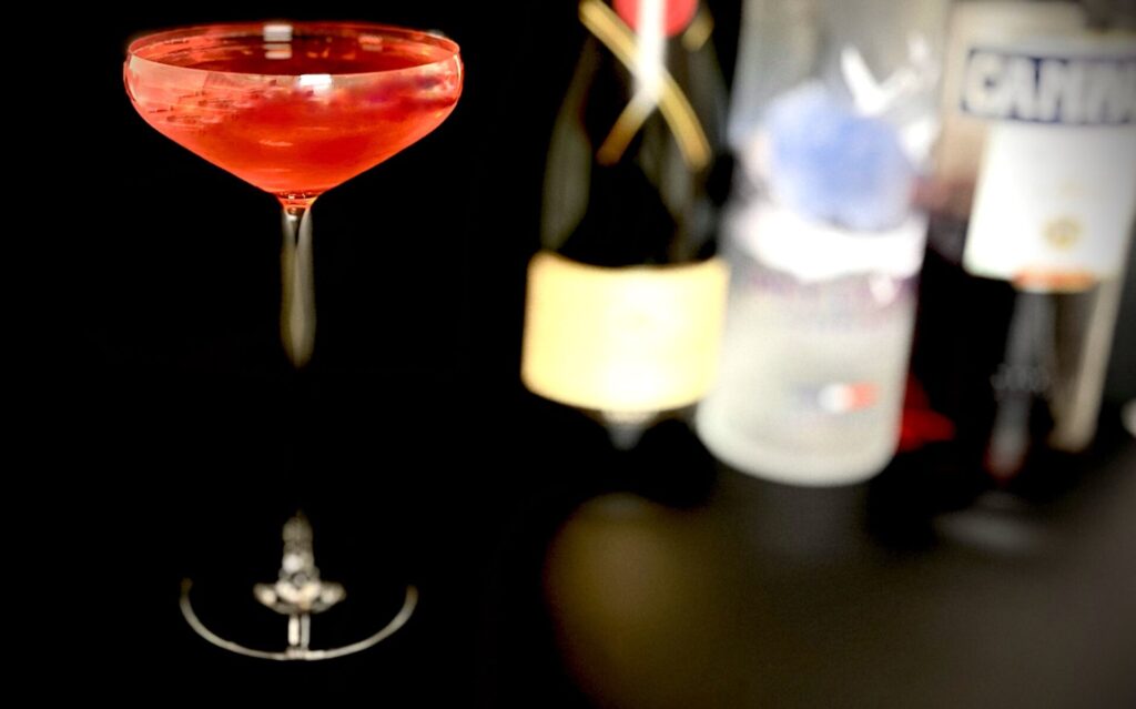 必要な材料:ウォッカ(アブソリュート 200ml)、カンパリ(200ml)、シャンパン(モエ・シャンドン)