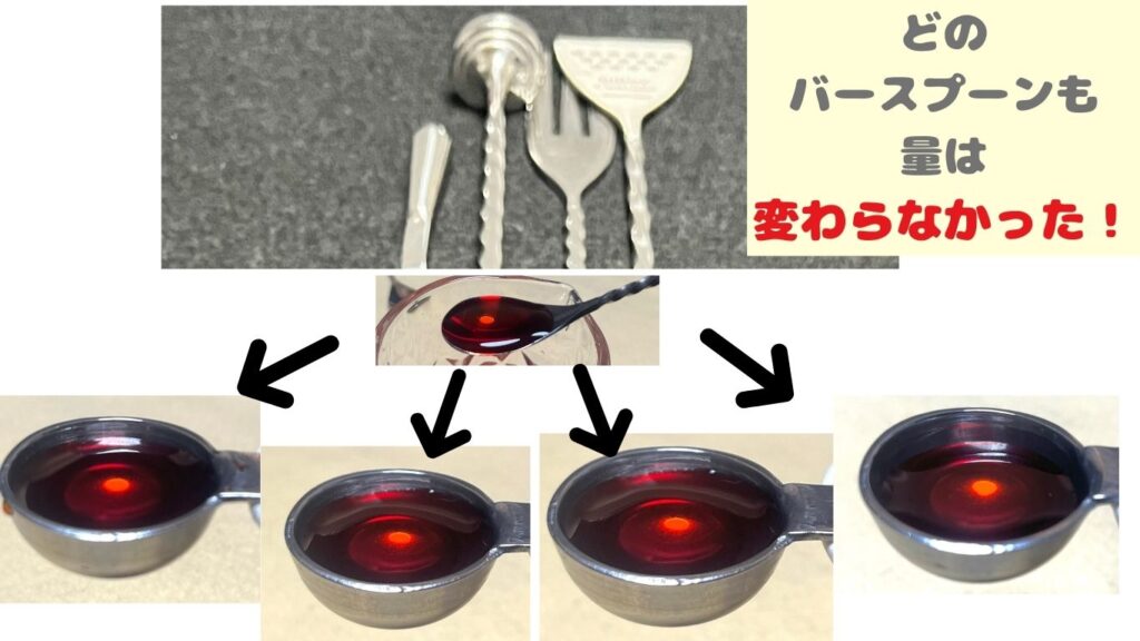 その結果、どのバースプーンでもほぼ同じ量を量り取れることがわかりました。
