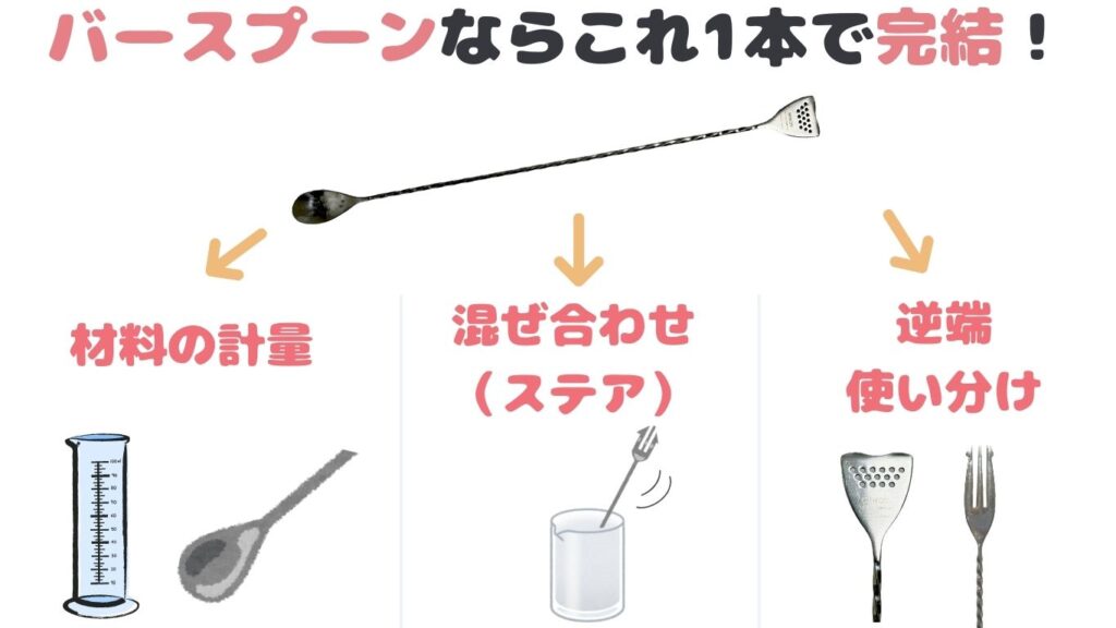 バースプーンなら「1tspの計量」も「ステア」も1本で完結